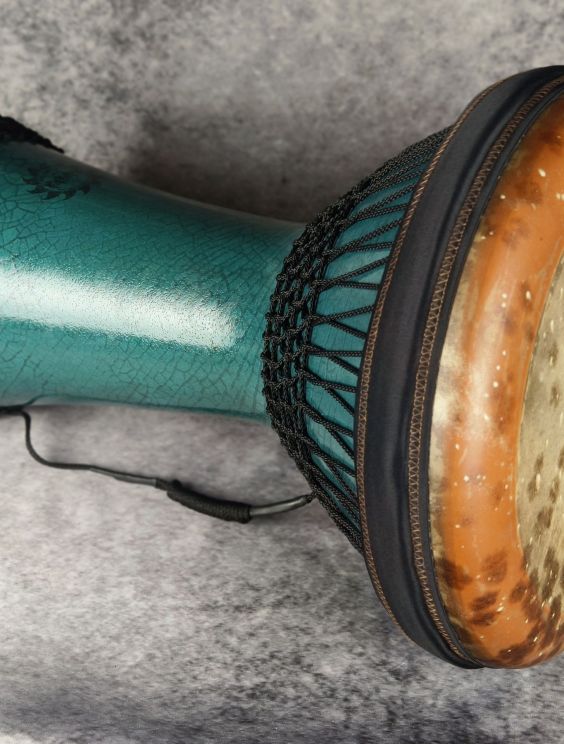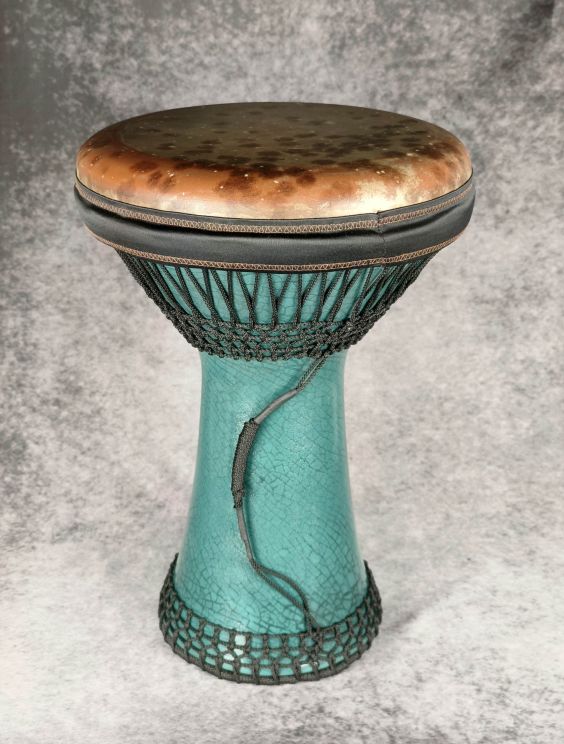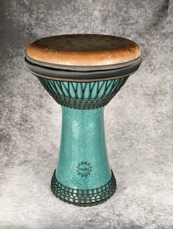 P r e m i u m line darbuka represents a perfectly-made product. In hand made instruments every darbuka/dohola is one of his kind. Rarely during the creation process a miracle is involved and the premium darbuka is born, one with the most perfect characteristics, the golden samples. In this line of darbukas materials like clay, glaze and natural skin met in a magical way which brings into life a balanced harmonic sound.