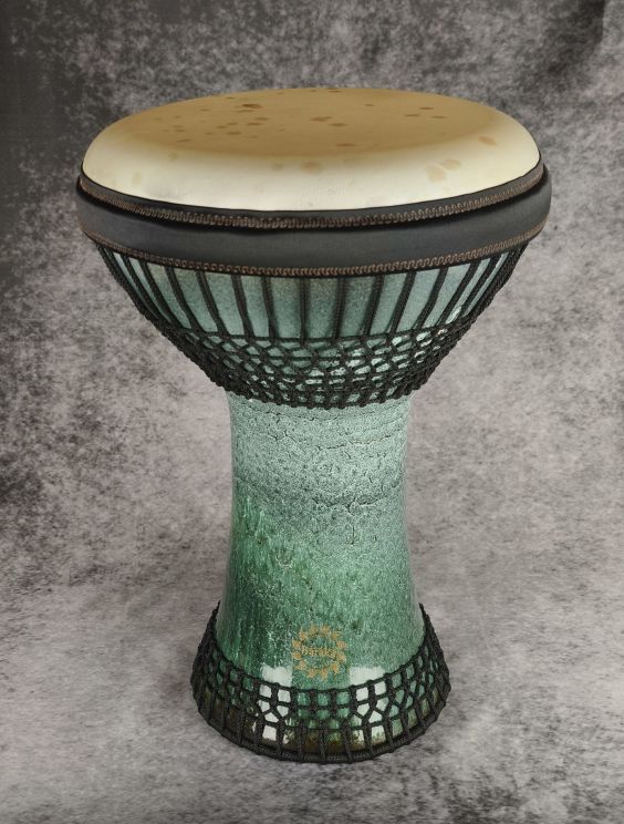 P r e m i u m line darbuka represents a perfectly-made product. In hand made instruments every darbuka/dohola is one of his kind. Rarely during the creation process a miracle is involved and the premium darbuka is born, one with the most perfect characteristics, the golden samples. In this line of darbukas materials like clay, glaze and natural skin met in a magical way which brings into life a balanced harmonic sound.