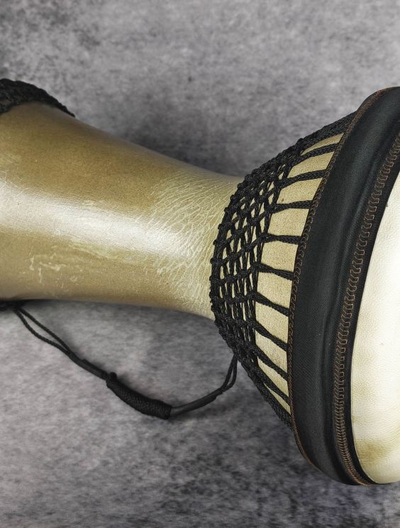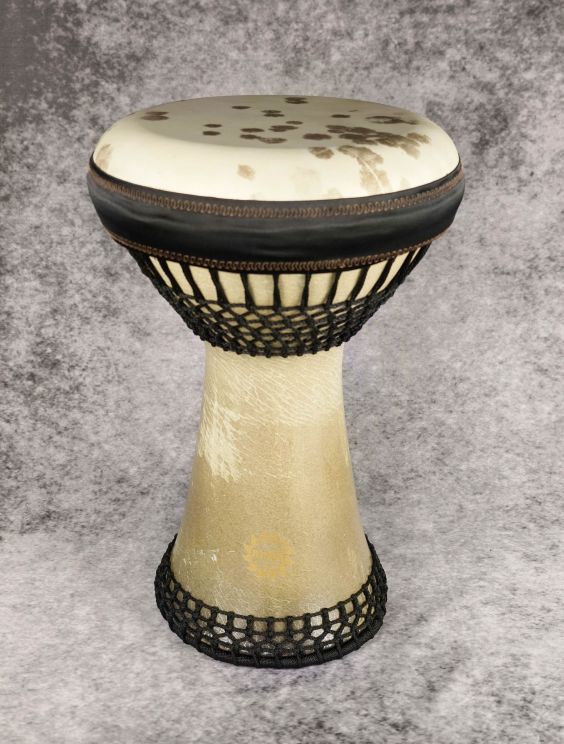 P r e m i u m line darbuka represents a perfectly-made product. In hand made instruments every darbuka/dohola is one of his kind. Rarely during the creation process a miracle is involved and the premium darbuka is born, one with the most perfect characteristics, the golden samples. In this line of darbukas materials like clay, glaze and natural skin met in a magical way which brings into life a balanced harmonic sound.